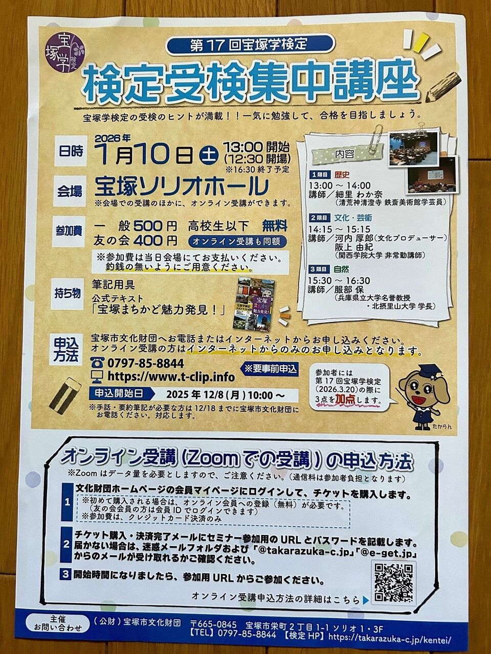 第17回宝塚学検定『検定受検集中講座』もあるようです。