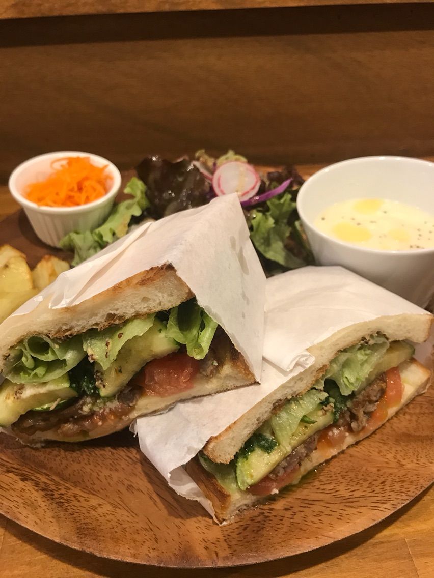 サンドイッチは2種から選べるようになっています!この日の“本日のサンド”は「魚フライタルタルサンド」だったのですが、このときは残念ながら売り切れで、代わりに「ズッキーニとサルシッチャのサンド」になっていました