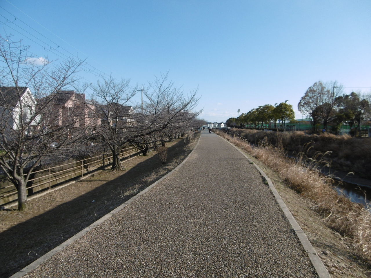 さらに進むと、左側には桜の木が続いています。春には散策にもびったり!でしょうね。