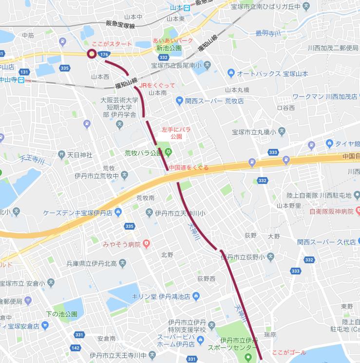 荒牧バラ公園までのほんの少しでもいいし、もっと先、昆陽池公園まで歩くもよし。