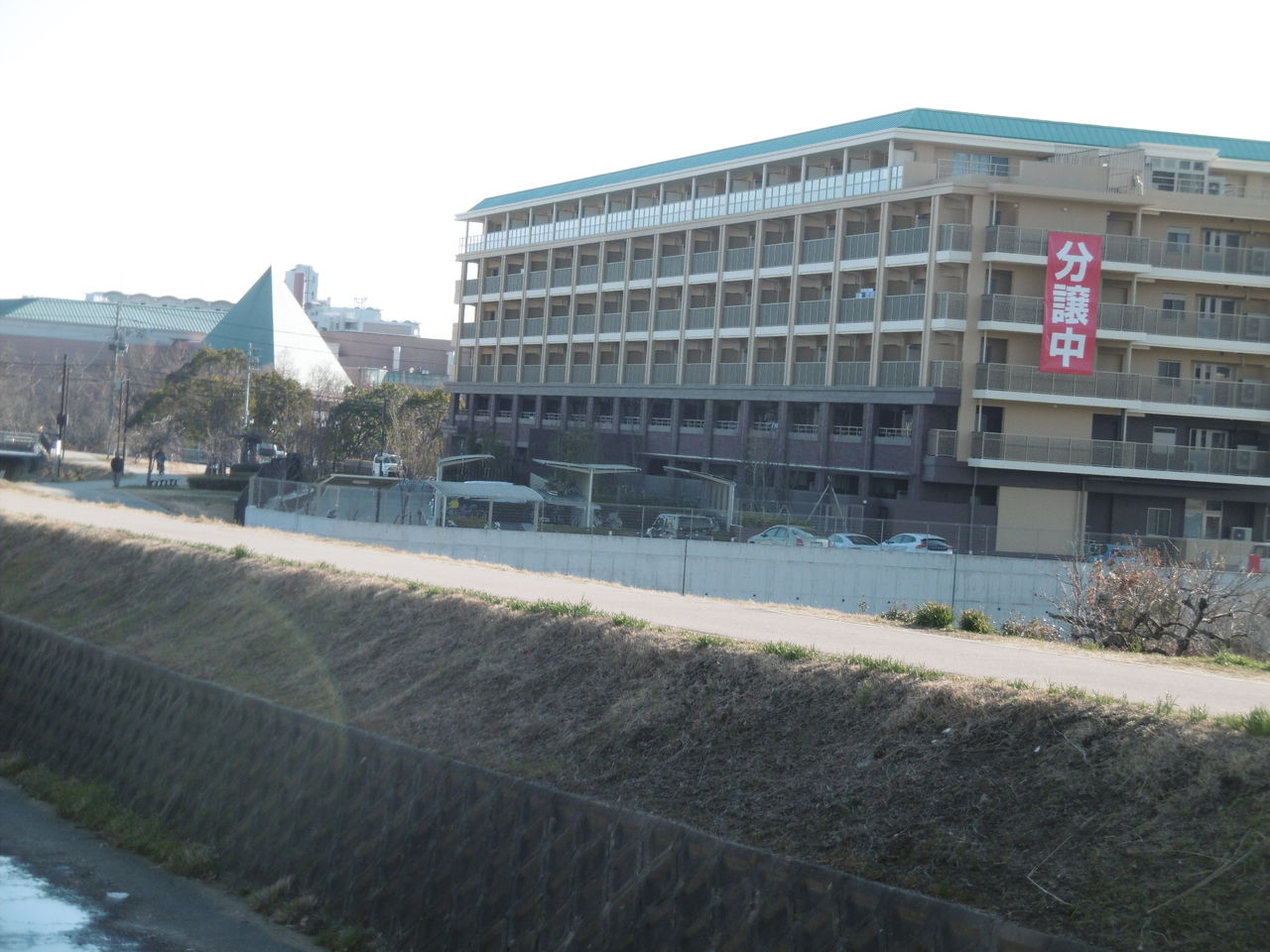 川の西側には、マンション。ここはコミパでもご紹介した、シニア向け分譲マンション 「マスターズマンション宝塚中山 中楽坊」です。