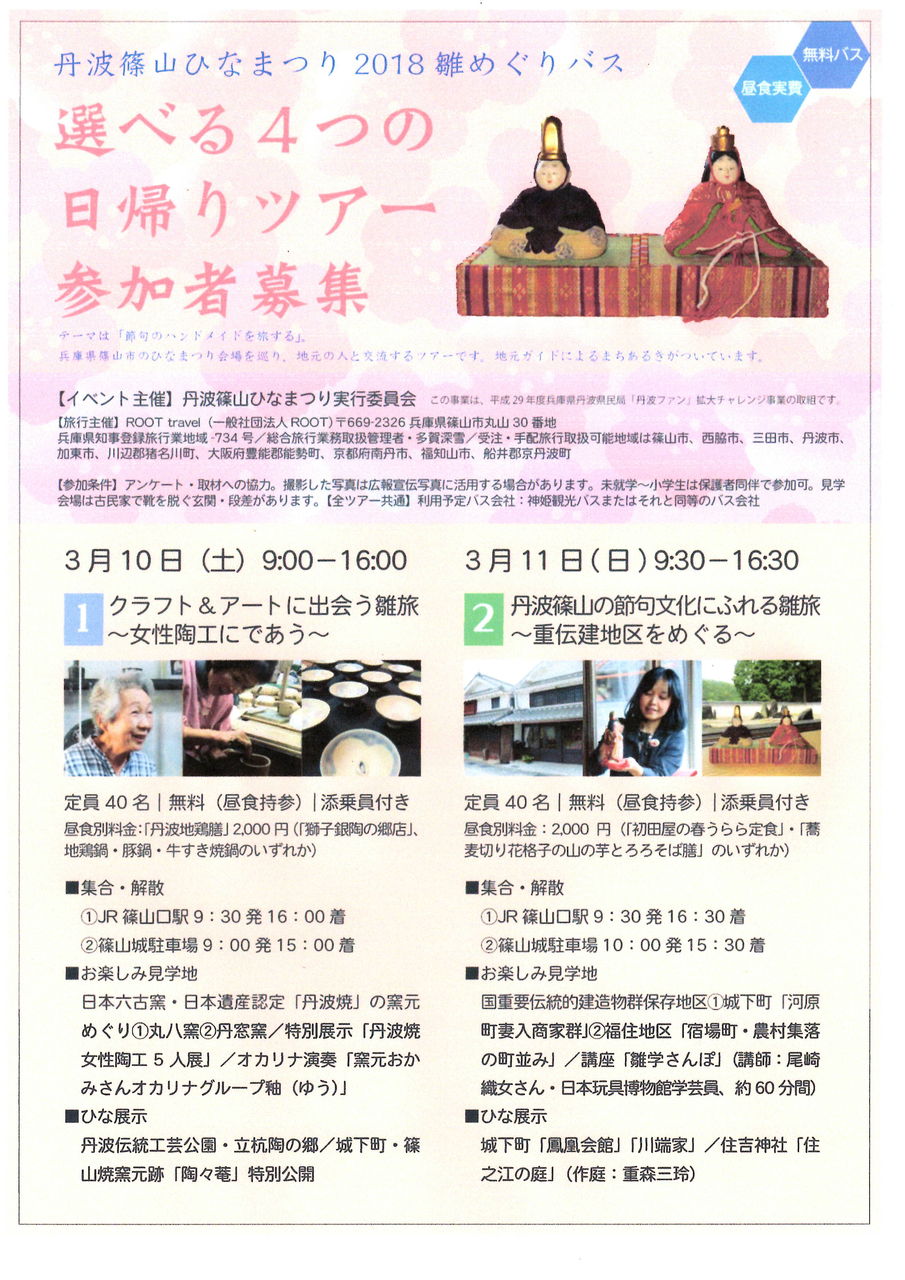 丹波篠山のいろいろな場所をめぐって、個性豊かなお雛様を楽しむイベント!