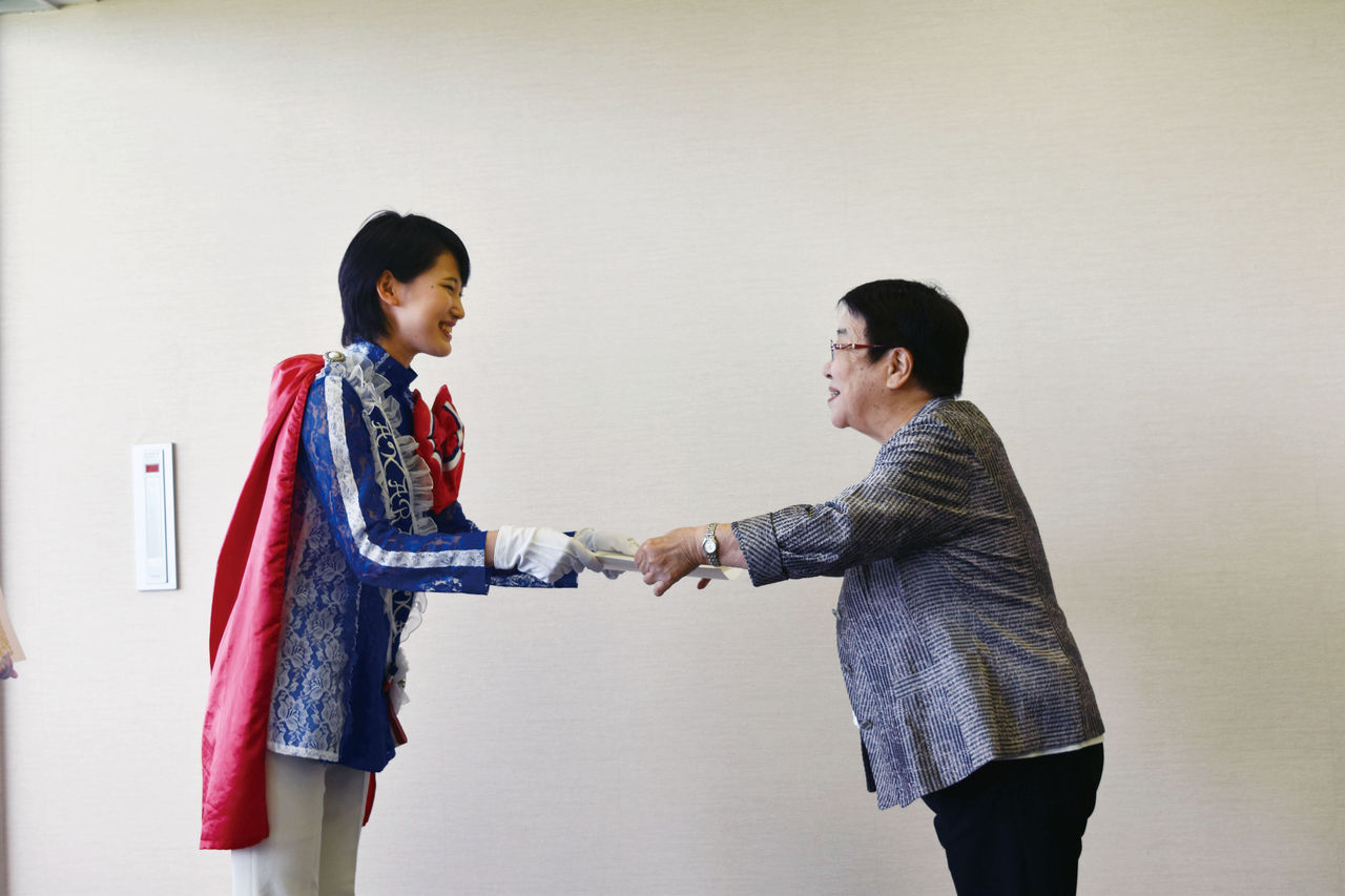 お二人とも目をキラキラ輝かせて、たくさんの人との交流に思いを馳せているようでした。2年目のスタートを切った宝塚市観光大使リボンの騎士「サファイア」のますますのご活躍をお祈りいたします。