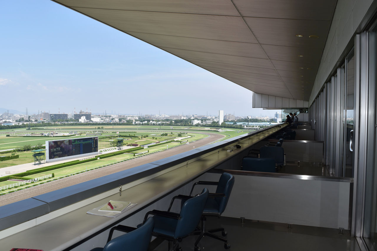 任命式は、阪神競馬場内にある貴賓室コスモスで行われましたが、そこは特別なエリアなので通用門で市役所の方と待ち合わせをし、お招きいただきました。私たちもスーツ着用です。