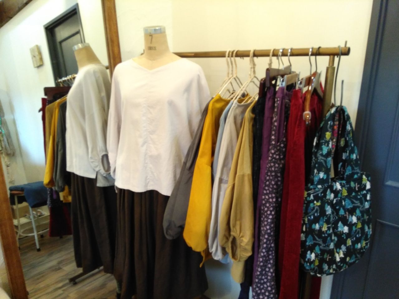 お店の奥にはコットンテイルのアトリエがあるようです。すてきなお洋服も並んでいました