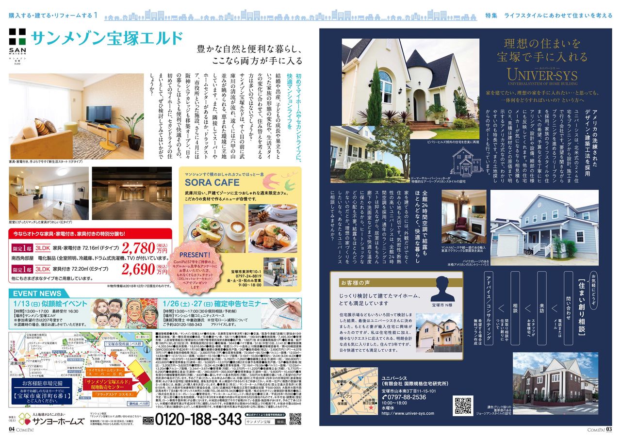 巻頭特集「ライフスタイルにあわせて住まいを考える」のほか、習い事やグルメスポット、イベント情報などが掲載されています!
