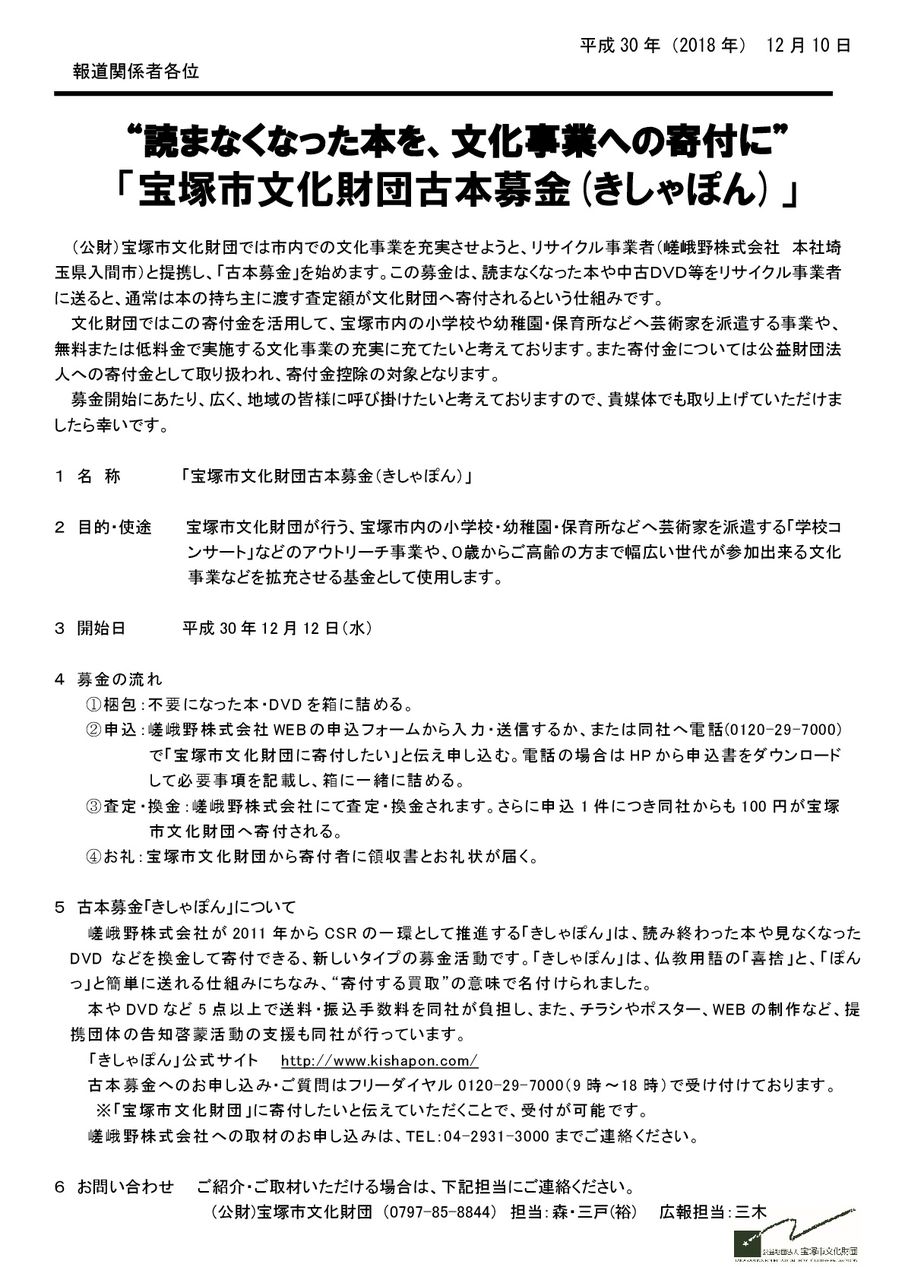 ④宝塚市文化財団に100円寄付される!(お名前を添えて寄付するそうです)