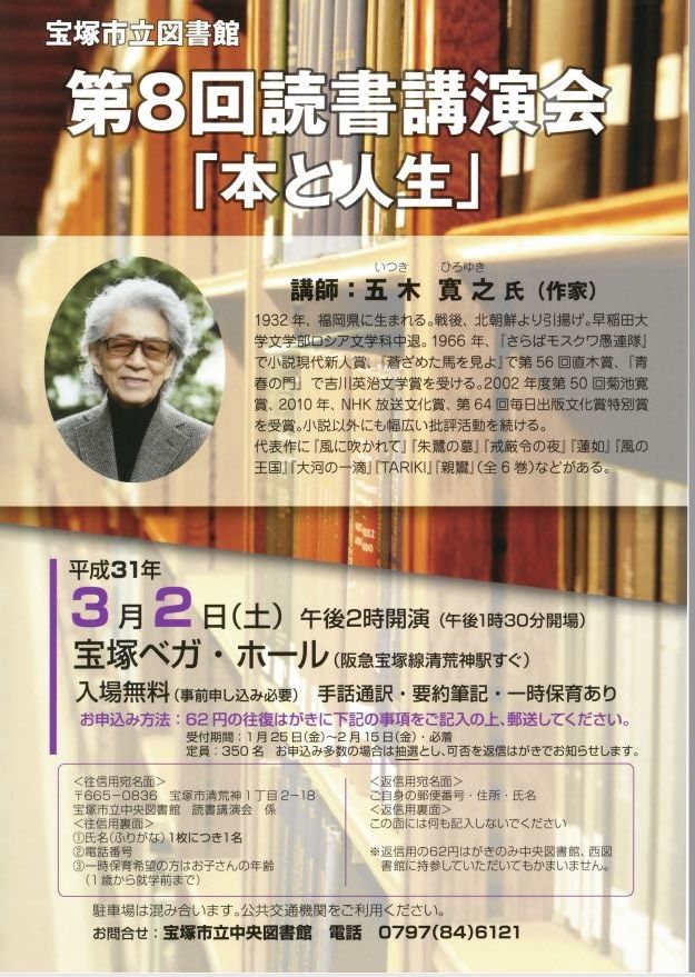 そんな人にも、そして読書好きな人にもお勧めなのが、宝塚市立図書館の読書講演会。