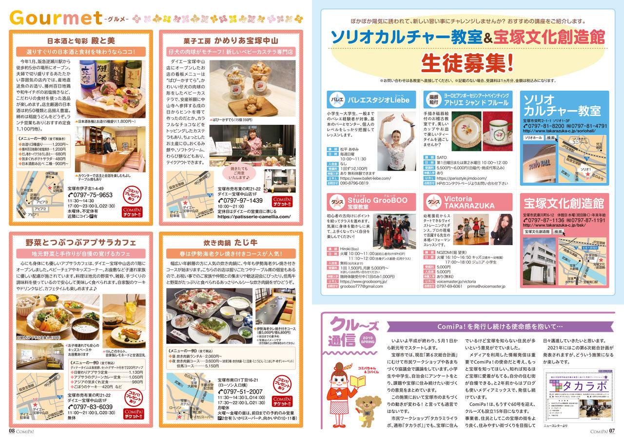 巻頭特集「新しいモノ・コトに出会い、 新しい自分を見つけよう」のほか、習い事やグルメスポット、イベント情報などが掲載されています!