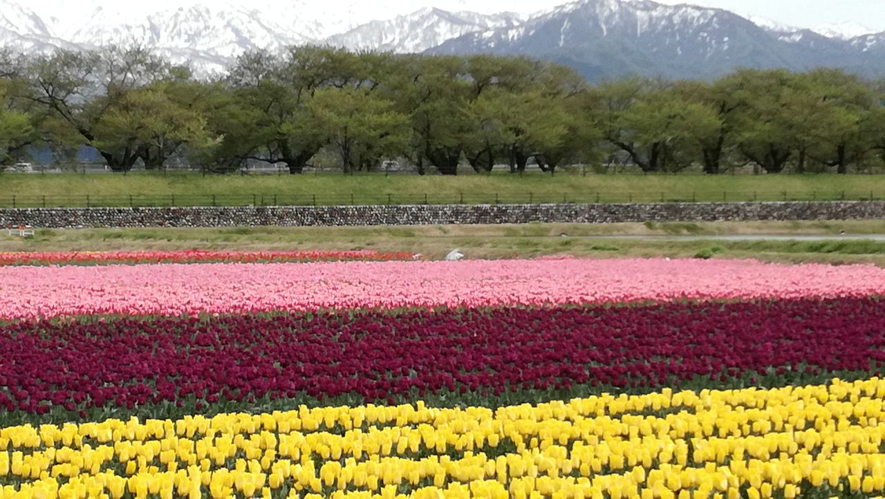 いやもう、感激~~アルプスとチューリップ畑