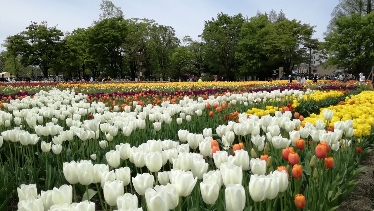 まずは、となみのチューリップフェアへ。色鮮やかなチューリップが満開。