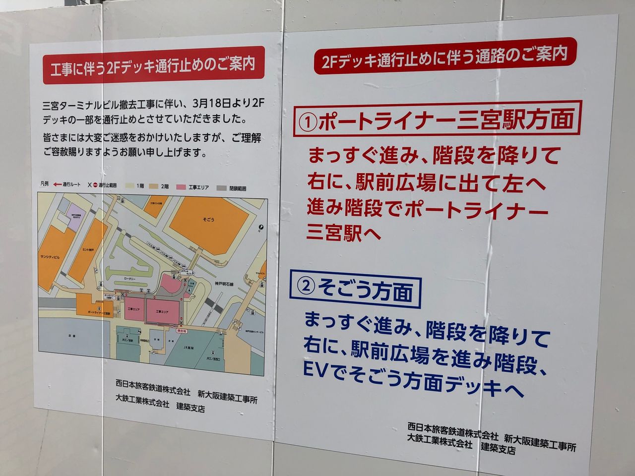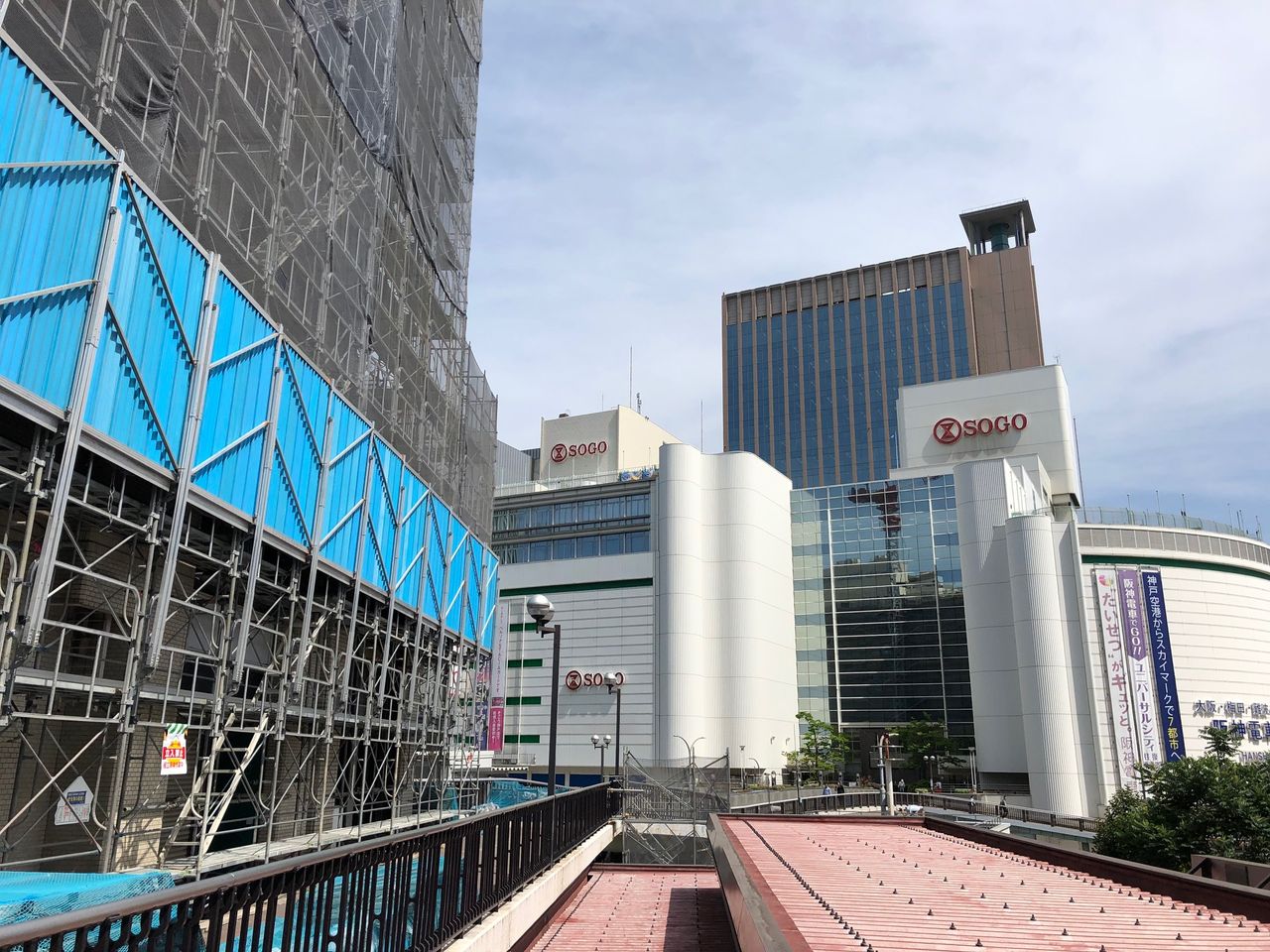 ビルの2階周りにはデッキがあって、そごう神戸店や、JR三ノ宮駅中央口に行くことができたのですが、今は工事中で通れなくなっています。