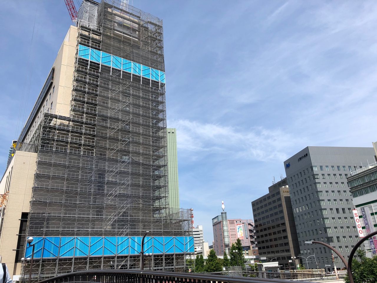 クレーンが上がっているのを見るだけでは、新築なのか、はたまた解体なのか、素人には全くわかりませんが‥‥大勢の人が行き交う駅前で解体工事をするのは大変なのでしょうね。