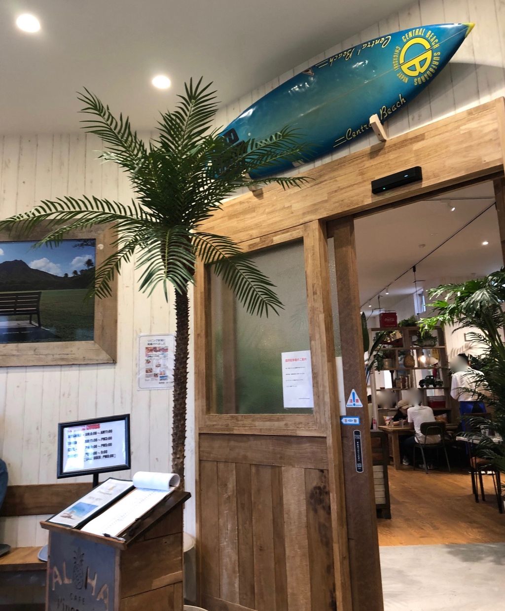 でも、とにかく広い!天井が高くて、あちこちにハワイアン〜な雰囲気ただよう素敵な店内は、テーブルもゆったり配置されていて、ソファタイプのところ、おしゃれなテーブルのところなど、いろんなテイストの席がありました。