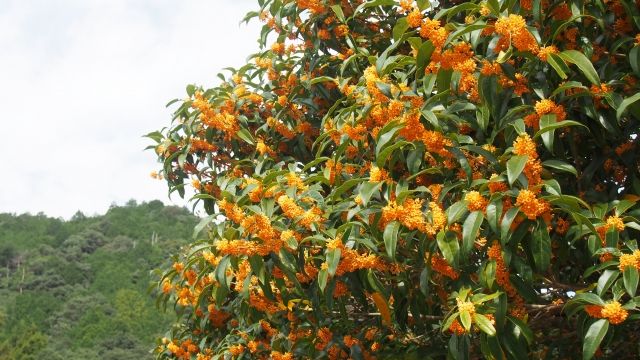 花じたいは、そんなに目立つ花ではないのですが、家々の並ぶ生け垣からか、ほわ〜っといい匂いがして、あ、秋なんだな…と思わせてくれますね。