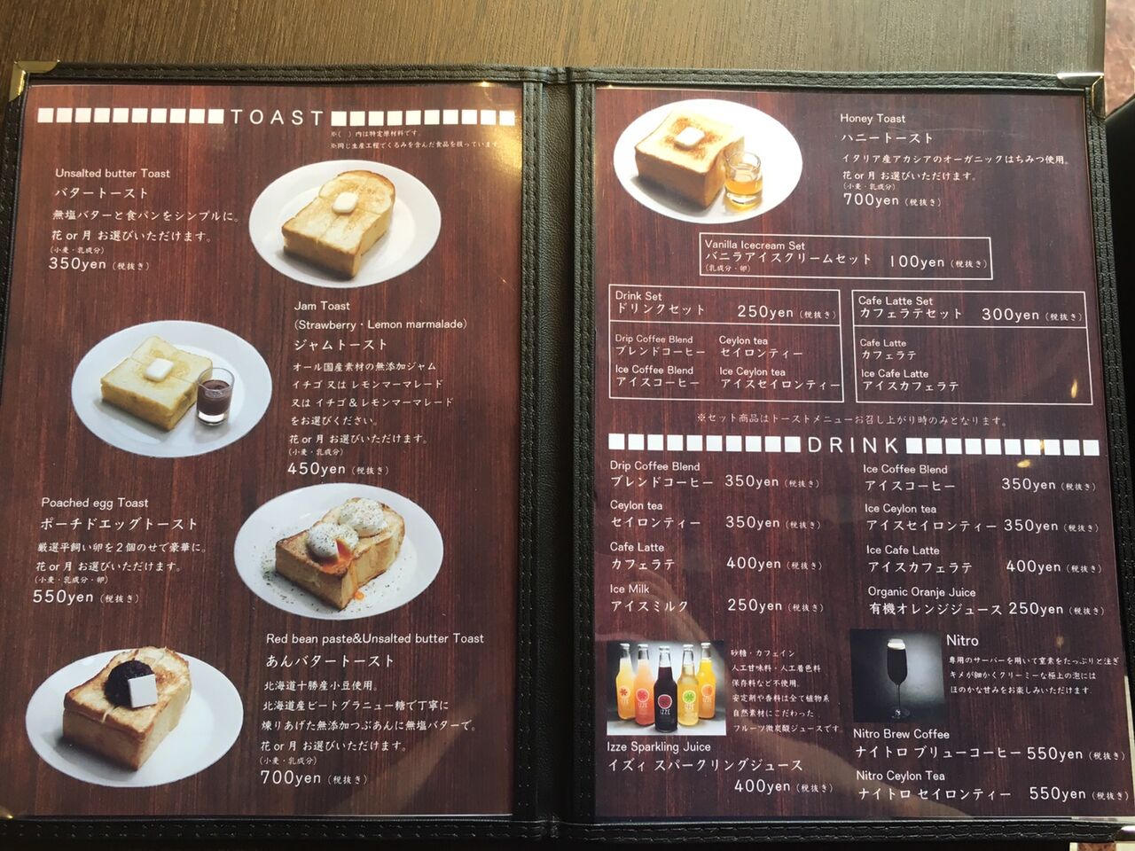 無添加の食パンに無塩バター、無添加ジャム、無添加のつぶあん、オーガニックはちみつなど、健康志向には嬉しい素材でのトーストが5種類登場しています。