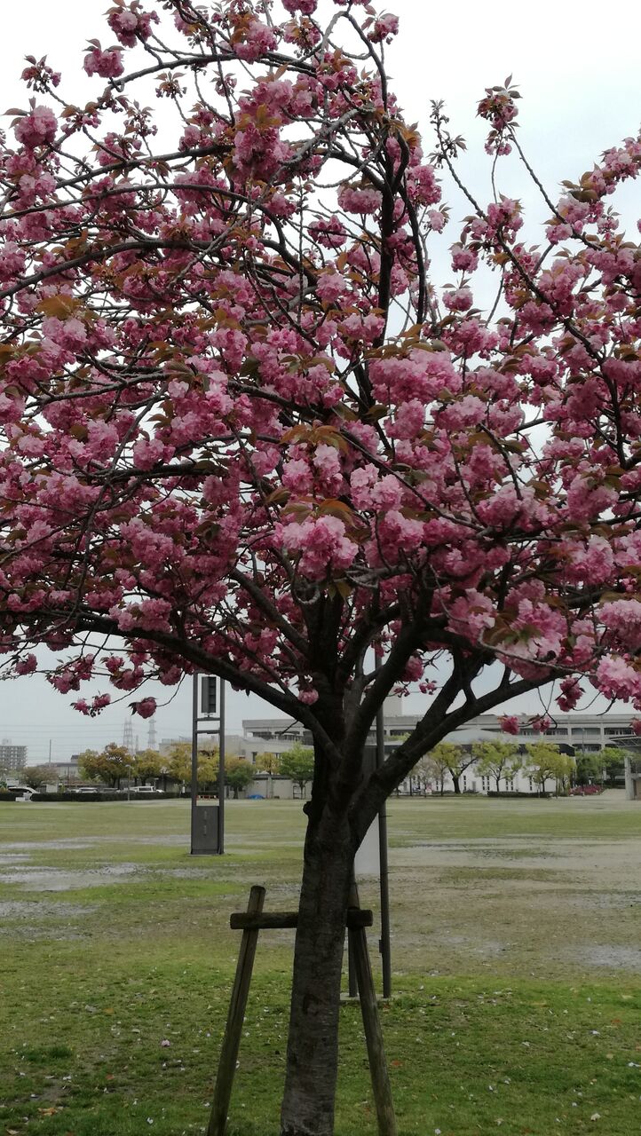 花のみちは、ソメイヨシノも有名ですが、遅れて咲くこの八重桜の1本は象徴的です。