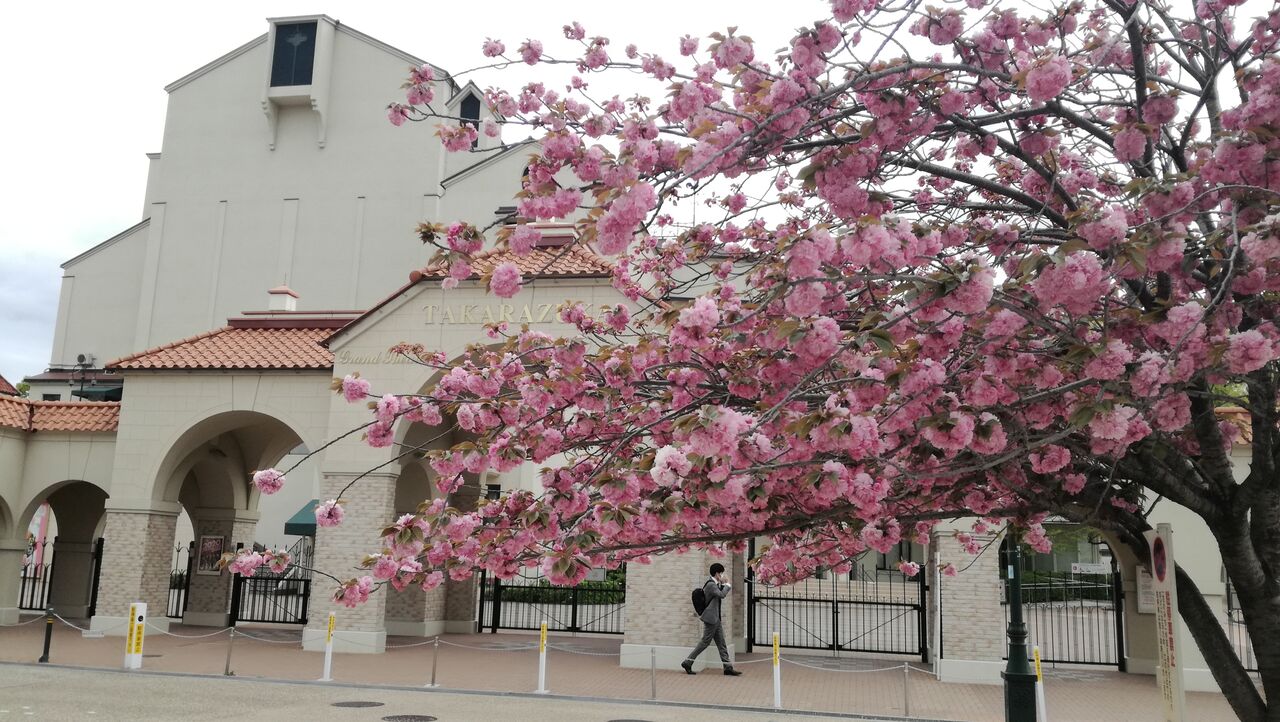 『宝塚歌劇場前』の満開の八重桜です。