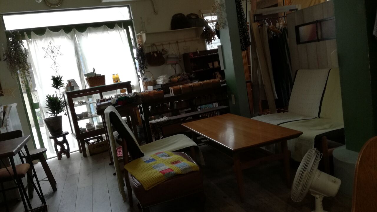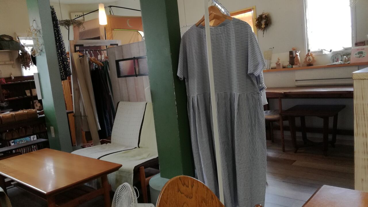 店内では、手づくり雑貨や靴下、さらり夏の服が展開中。