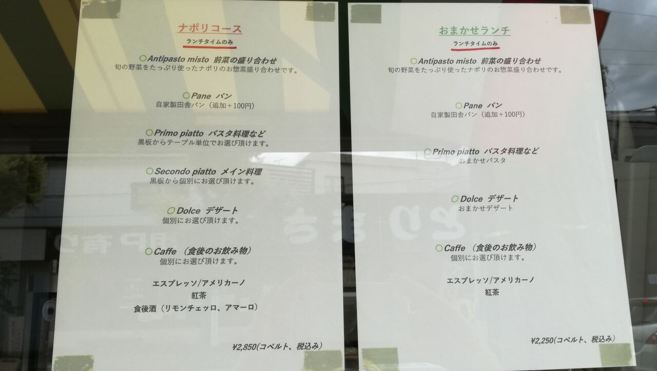 ランチには、メイン料理がついている「ナポリコース」2,850円(税込み)と、今回私たちがオーダーした『おまかせランチ』2,250円 があります。