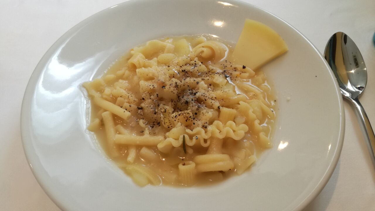 濃厚なチーズが添えられていて、数種類の形のパスタが、口の中で色々な食感に変化します。ボリュームたっぷり。