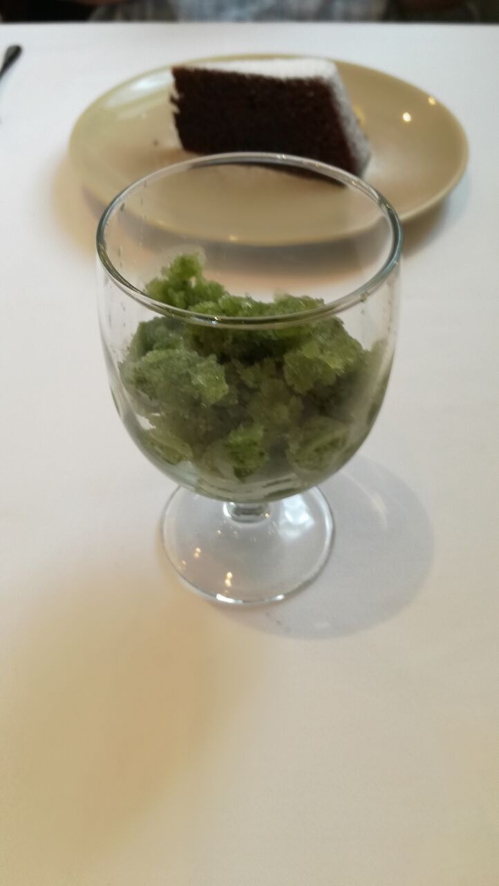 友人はチョコのタルト、私はバジルシャーベットを頼みました。
