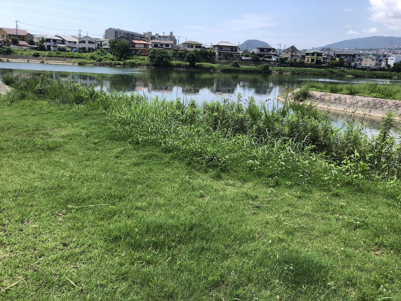 今回は、清荒神から散歩スタート。右側、荒神川が武庫川に合流するところです。