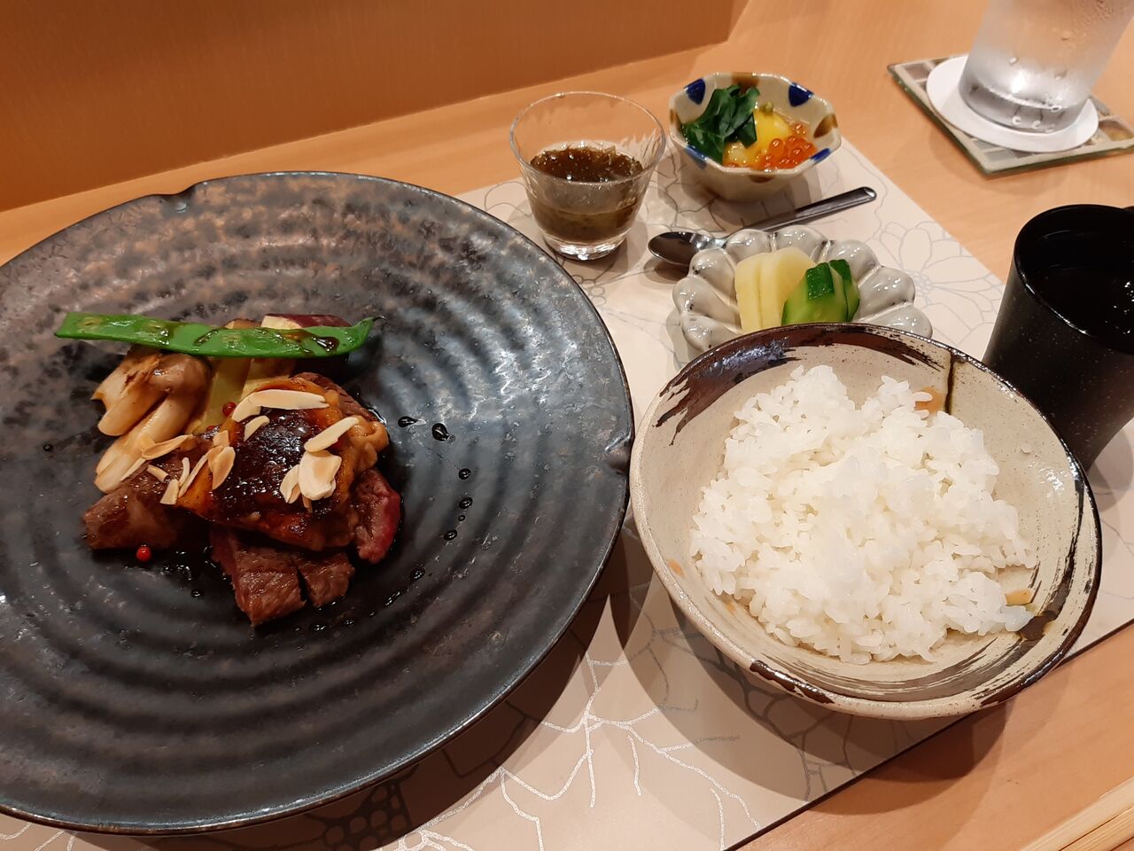 びっくりしました。ステーキを食べに来たのに、おそばです!でもこの肉そばのお出汁がひじょうに美味しくて、飲みほす勢い。お味は優しく上品で、お腹の中へするすると入っていきます。お肉も柔らかい。なんだかこれを食べただけでももう大満足。おそば屋さんもやってくれないかな。