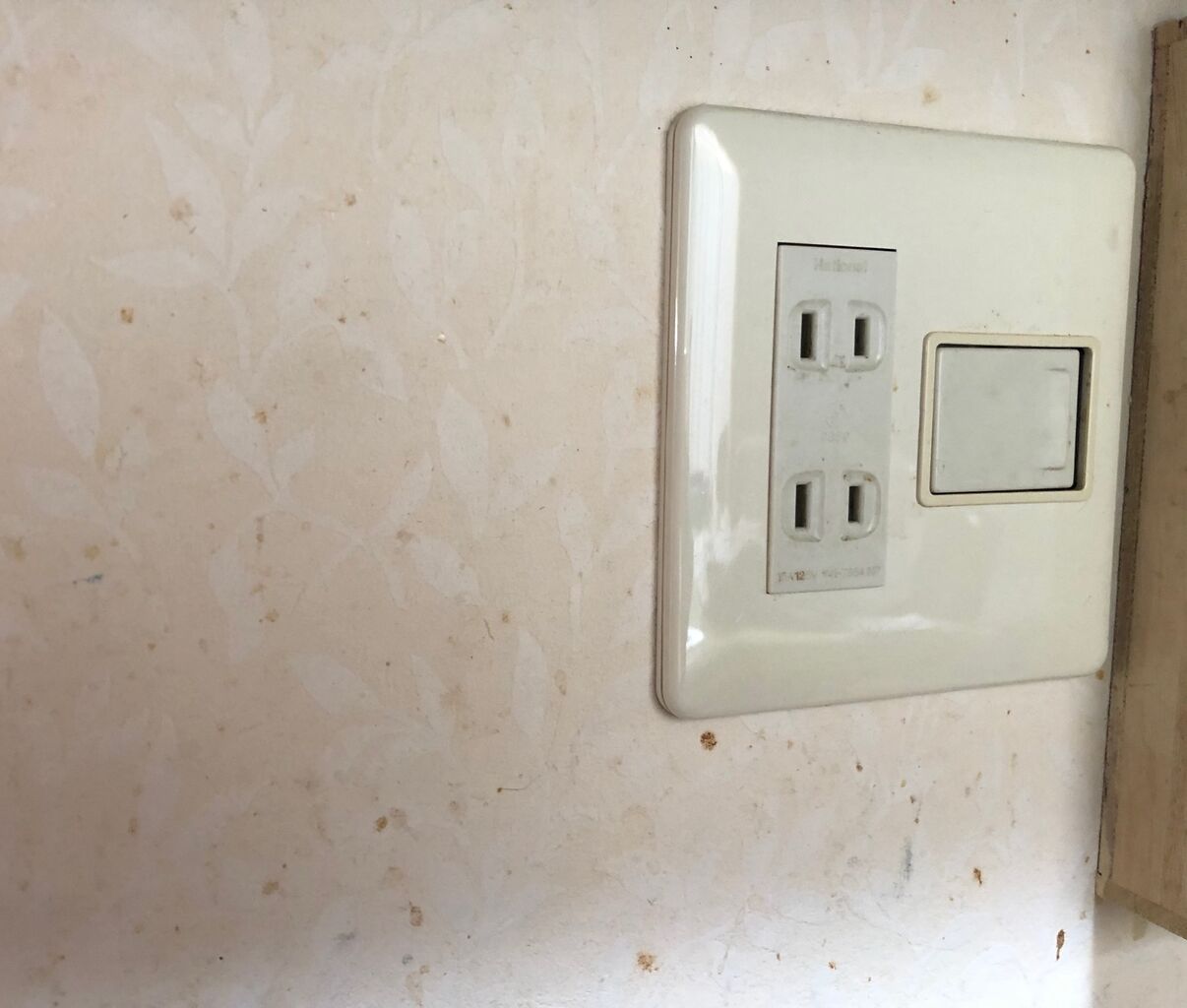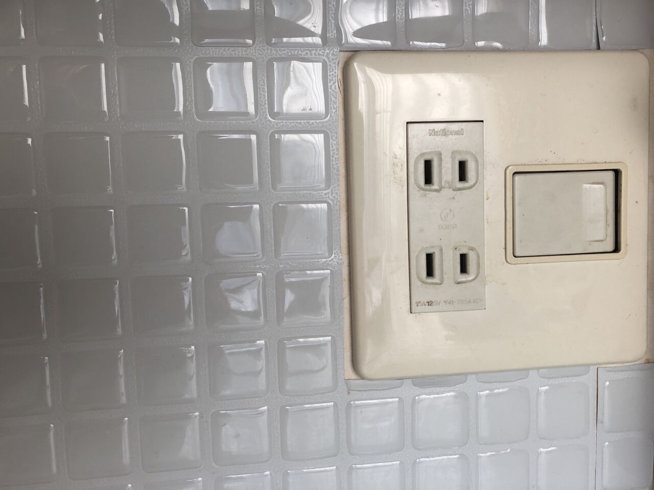 ホットプレート用(とは決まってませんが)のコンセント・鍋料理用のガスコンセントがあるのですが、その周りが…。