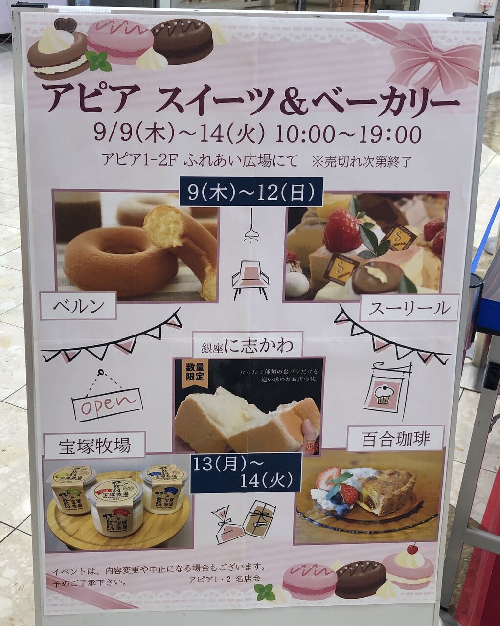 注意書きに、イベントは、内容変更や中止になる場合もございます。と注意書きがありますが、きっとと、多分あるハズ…。