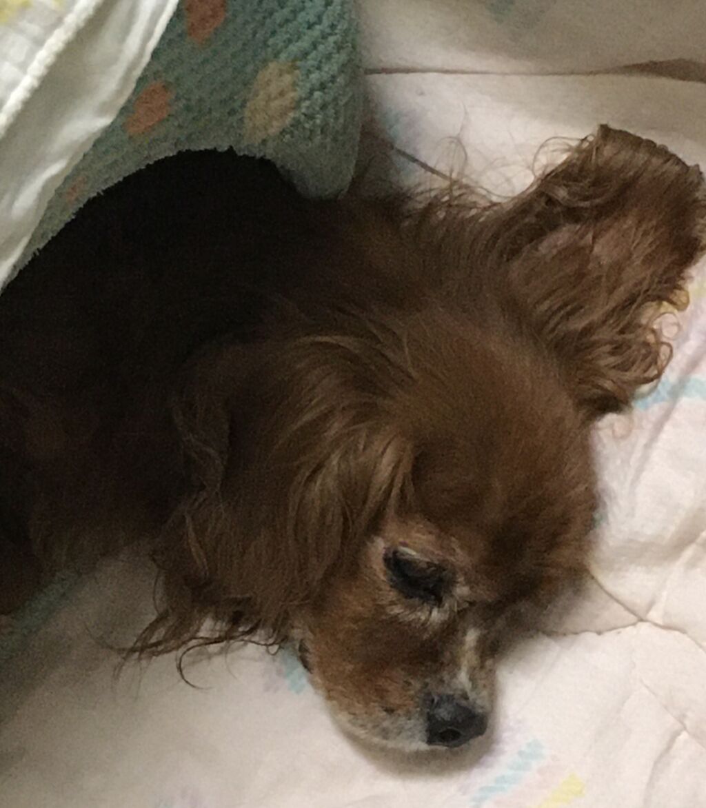 ピノちゃん! 愛情たっぷりのお布団にくるまれて、まどろんでいるのでしょうか~。