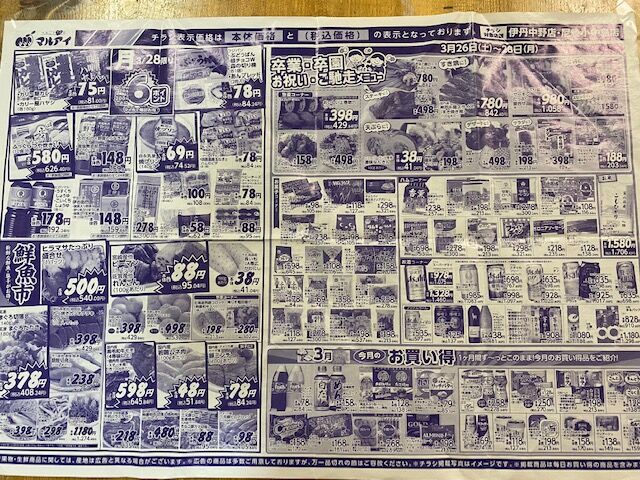こちら過去のチラシになりますが、価格の参考にどうぞ〜