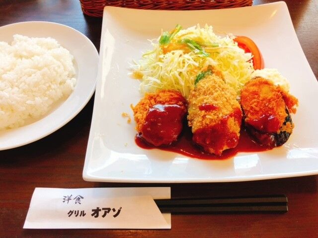 フライ3種盛り ヒレカツ、ピーマンの肉詰め、茄子