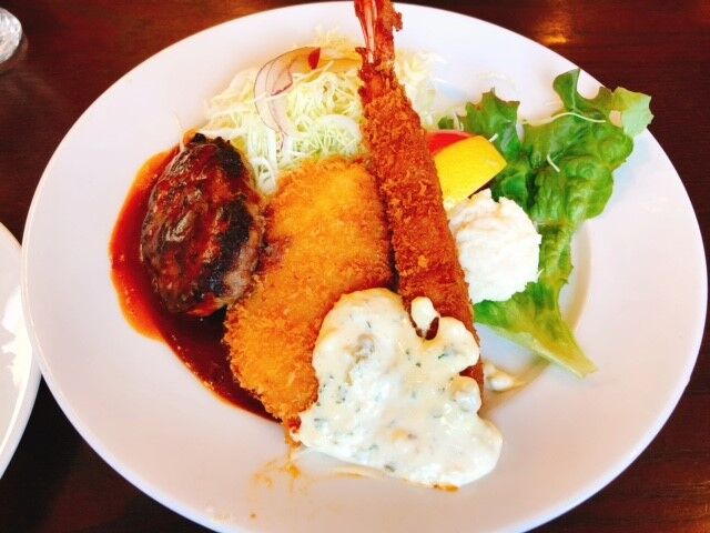 ハンバーグは安定の美味しさ、魚のフライもエビフライもサクサクで美味しかったそうです。