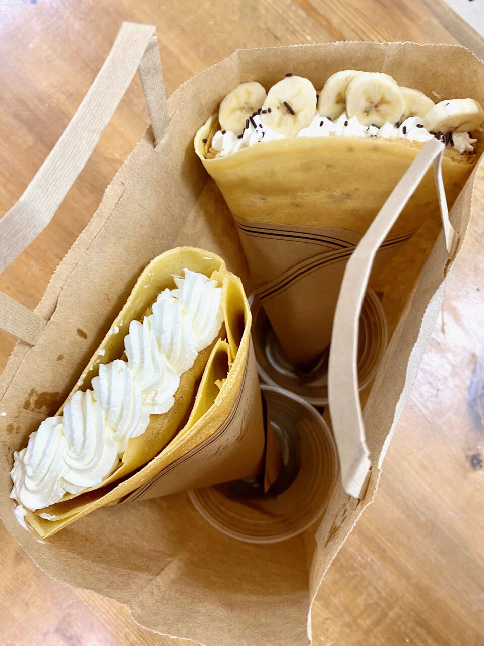 わーい、わーい クレープクレープ! 温かいうちに食べるほうがパリパリ食感が楽しめますとのアドバイスでした。