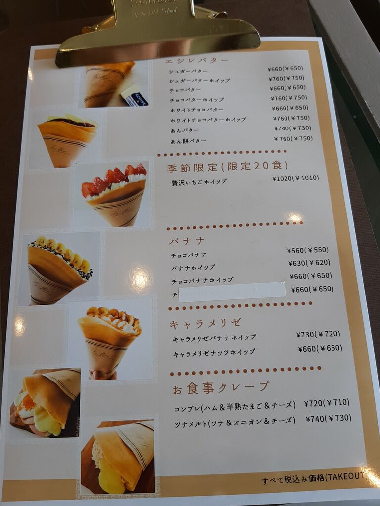 メニューには食事用のクレープもあるんです。甘いのが苦手な方はぜひこちらを。