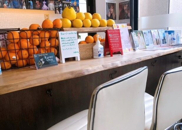 明るい店内。外から見ても柑橘類がたくさん!