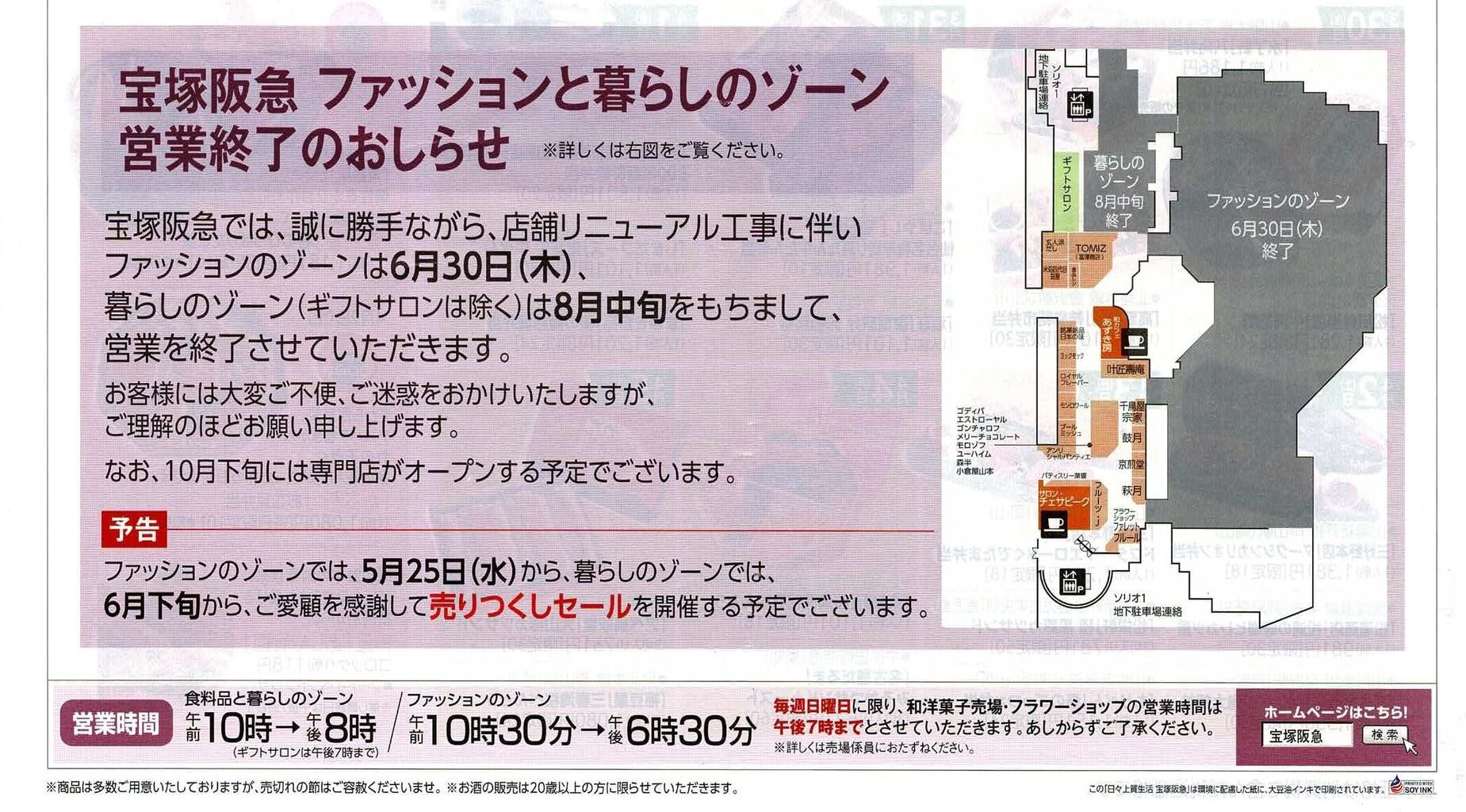 【宝塚阪急】ファッションと暮らしのゾーンが6月・8月に営業終了