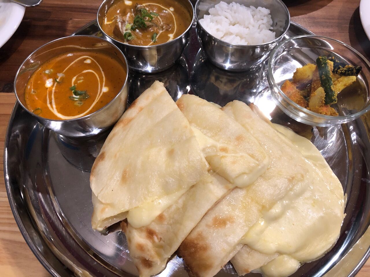 スタッフは、一度チーズナンなるものが食べてみたかったので、レディースセットにします。