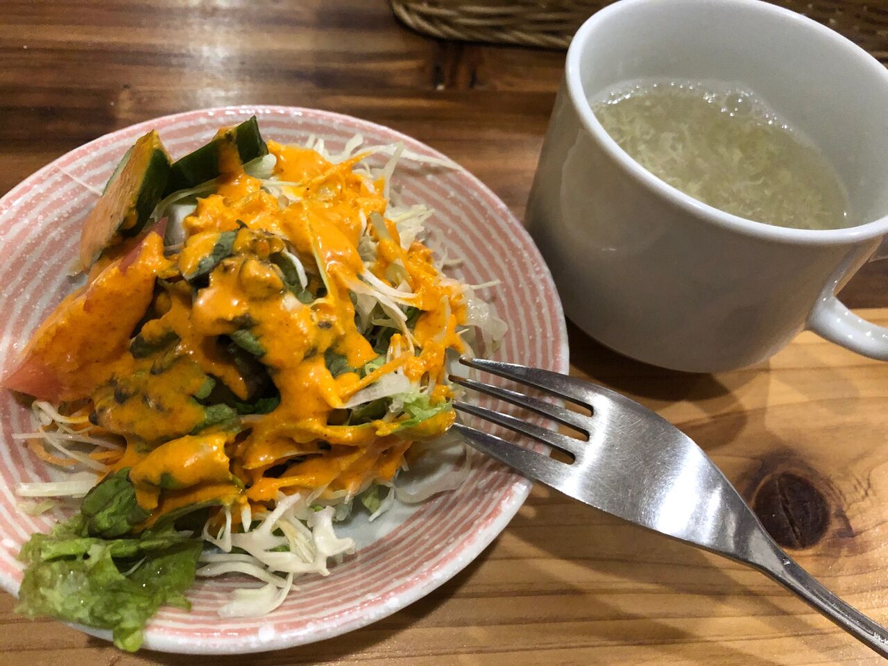 まずはスープとサラダ。