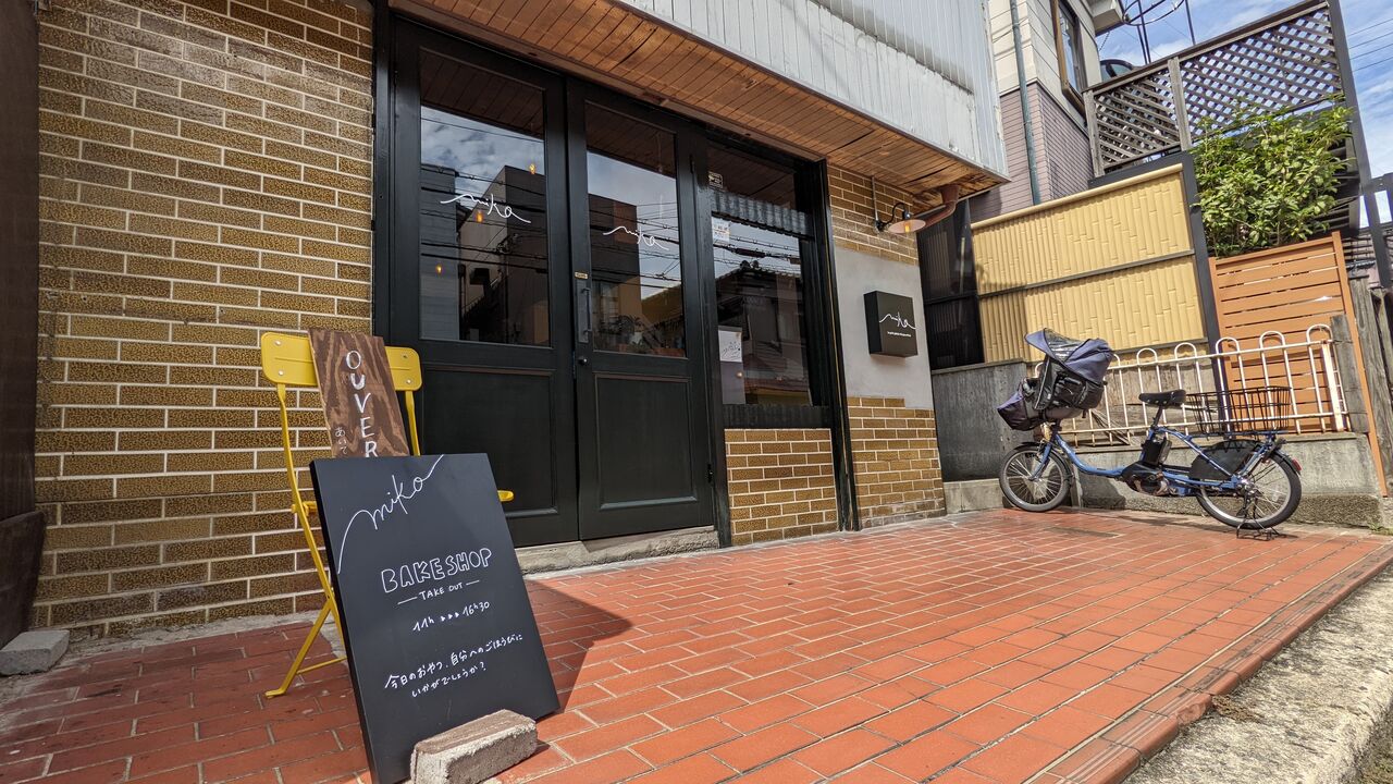 左手に、黒い扉のベイクショップ『miko』があります!