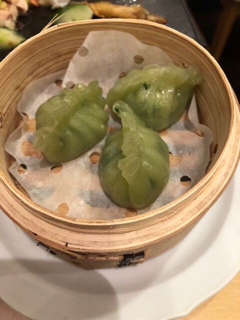 点心。海老ニラ蒸し餃子600円。酢醤油で食べました。
