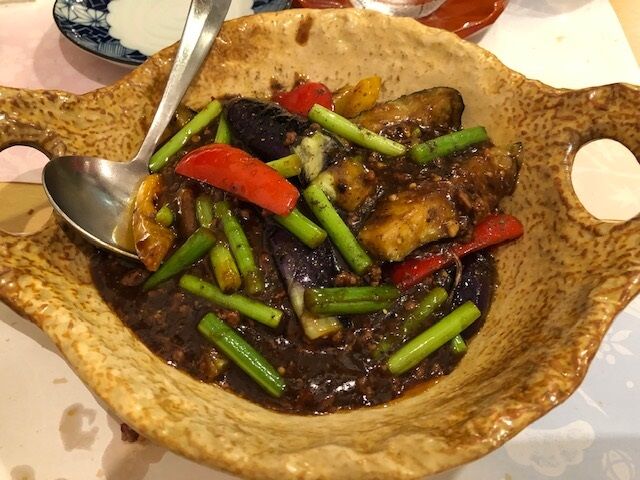 麻婆茄子1300円。ニンニクの芽がたくさん入って元気もりもり。