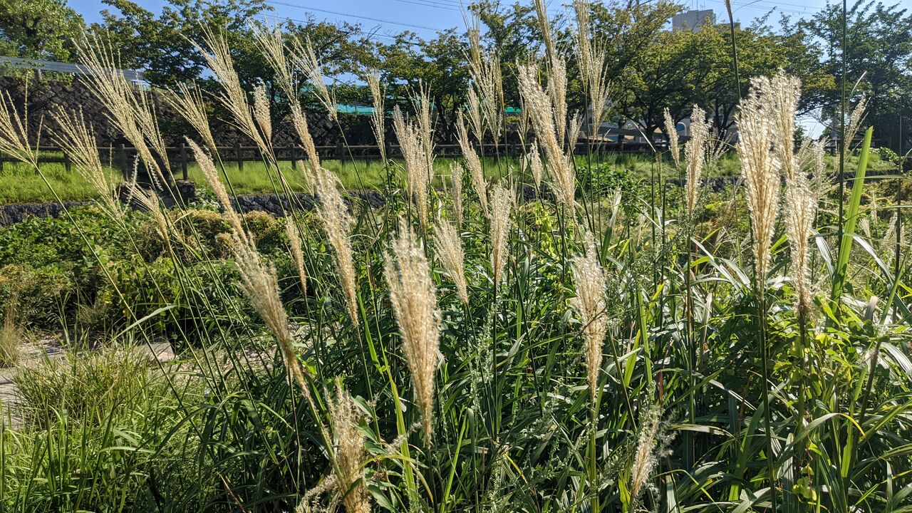 近所の公園で、ススキが開き始めていました
