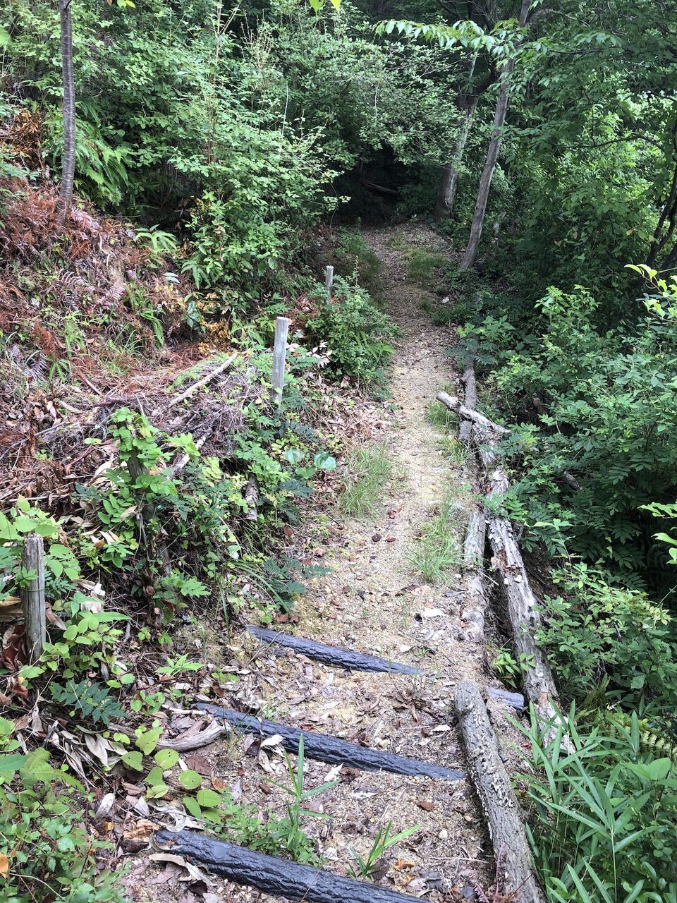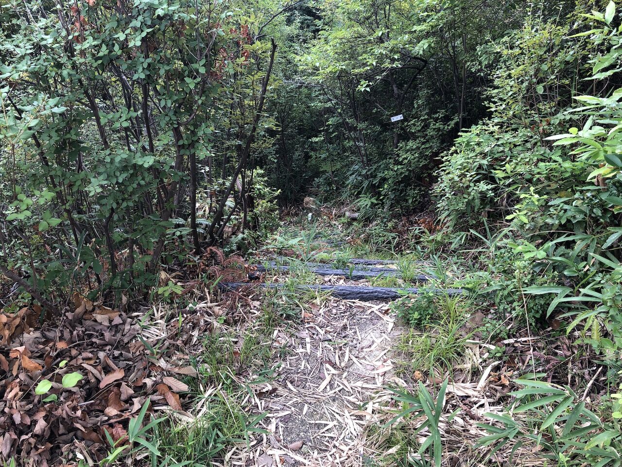 この写真の右側、わかりますか? ここから降りる道があります。