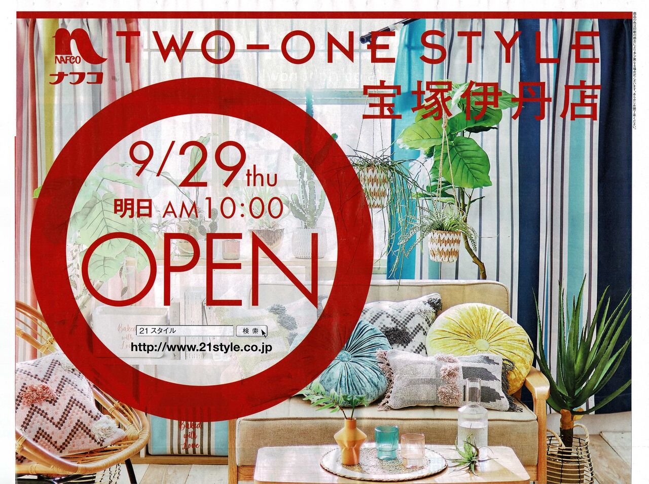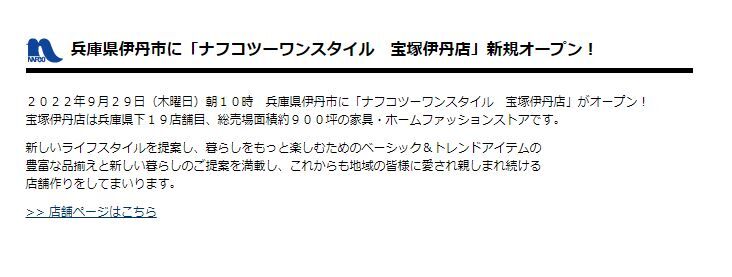 前にもお伝えしていた、ナフコ TWO-ONESTYLE宝塚伊丹店が、いよいよ明日オープン!