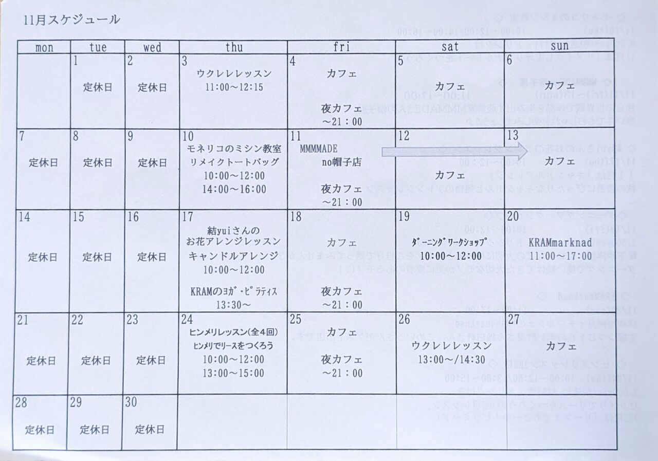 11月のイベントスケジュールを載せておきます↓