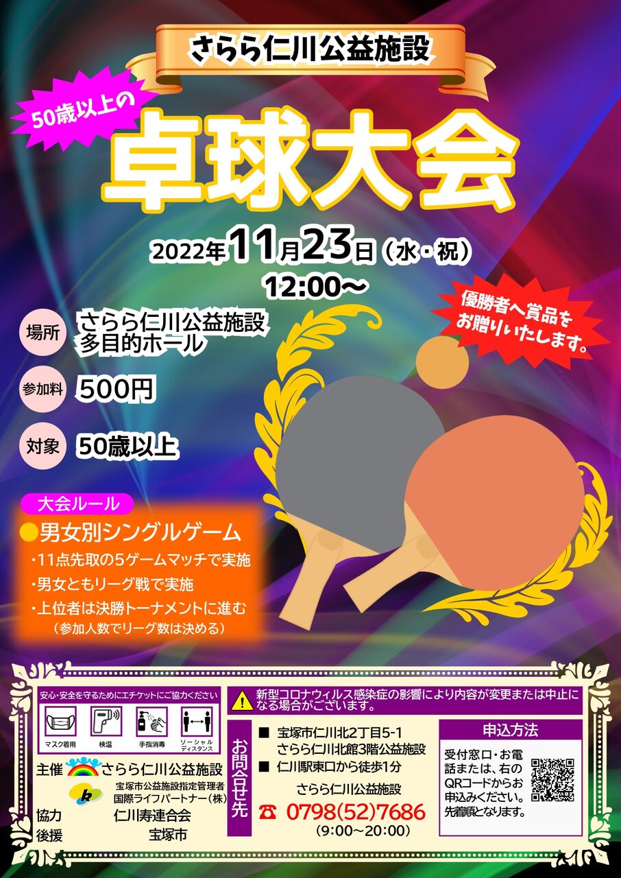 50歳以上の卓球大会 申込受付中!