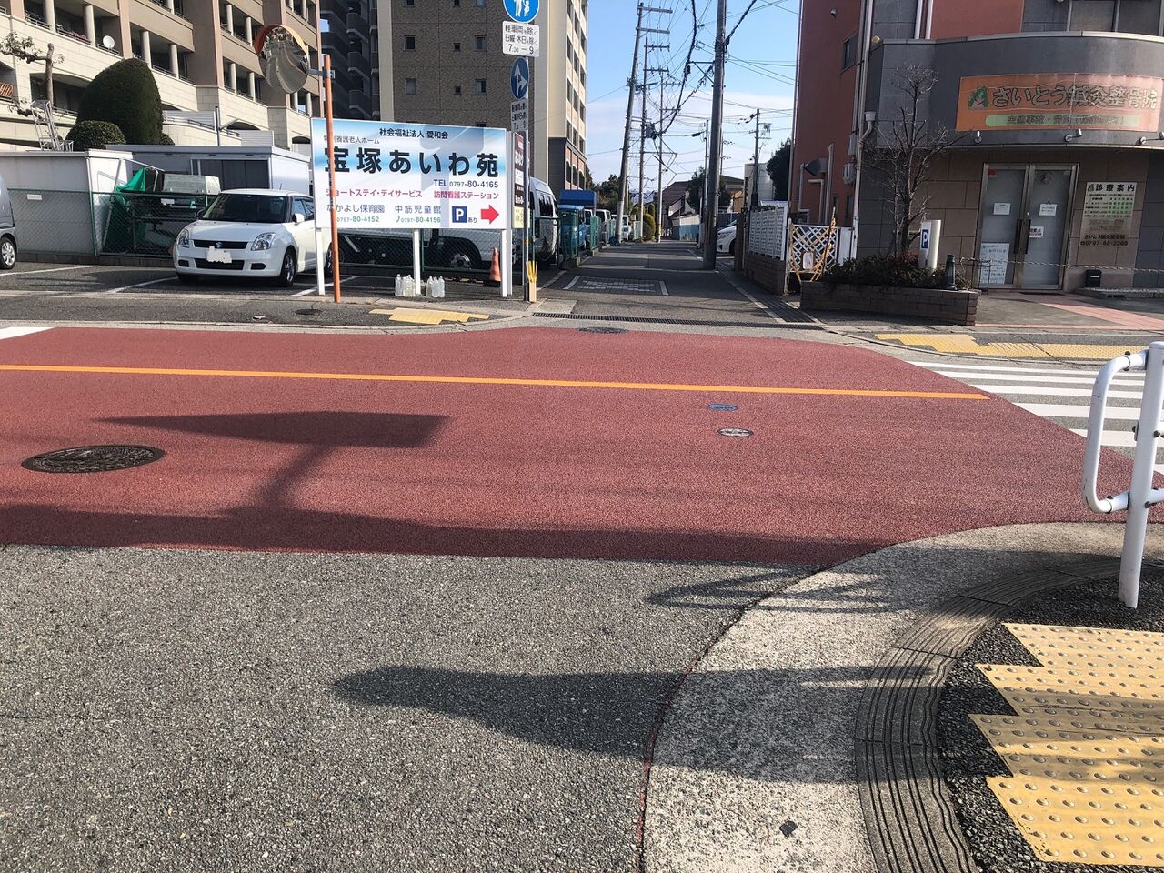「このカラー舗装になってから、車がきちんと止まってくれることが増えました」