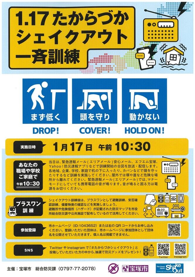 『1.17たからづかシェイクアウト一斉訓練』が実施されます。